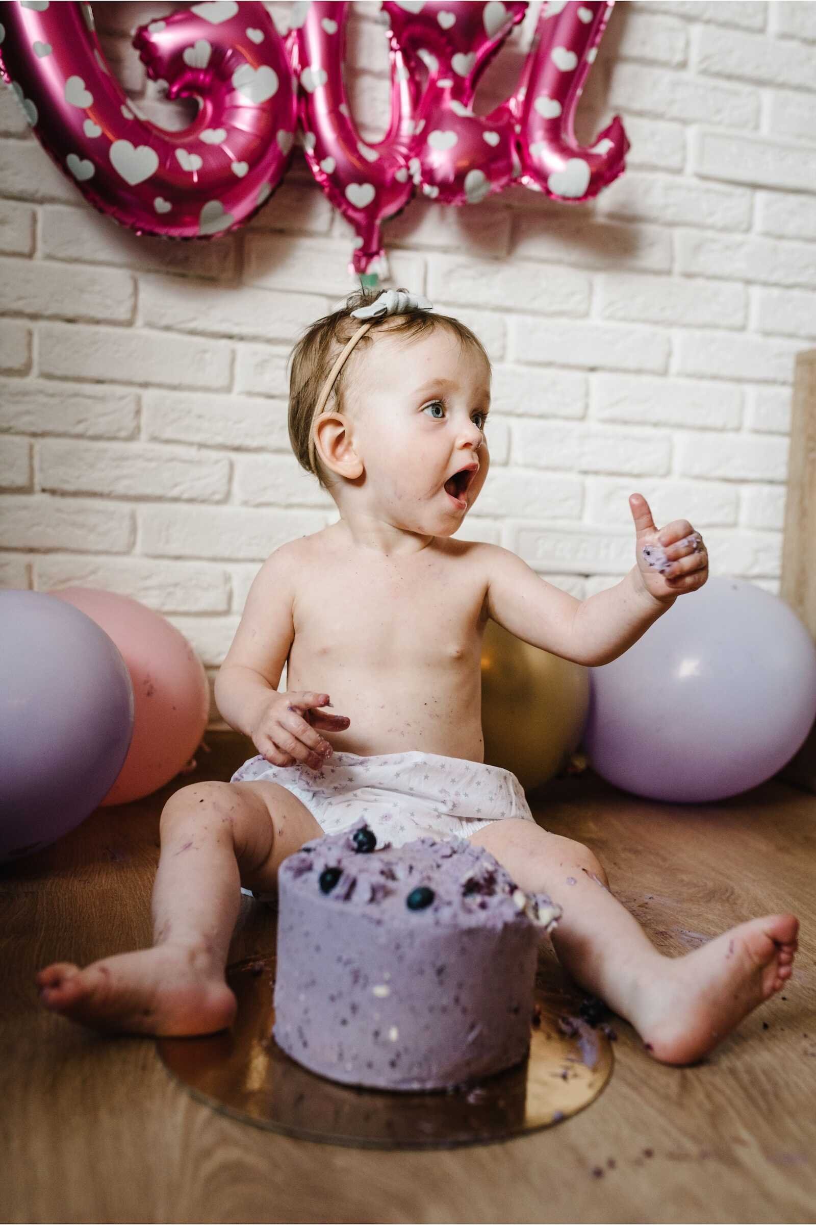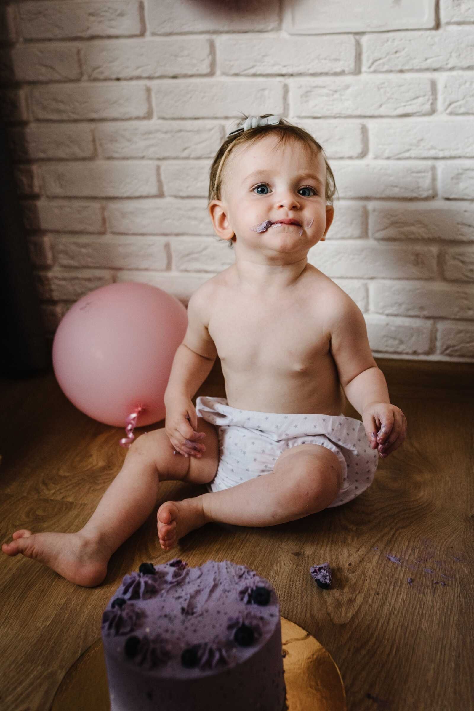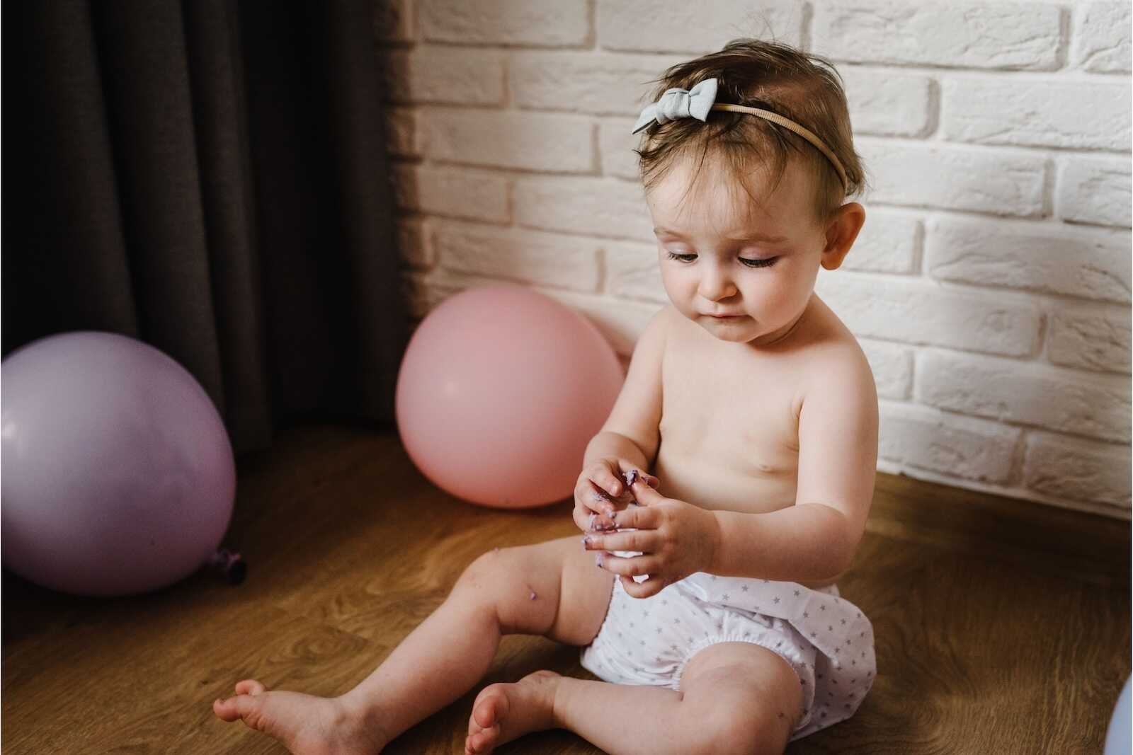 Most cake smash sessions happen when babies are 10–11 months old, not exactly at one year.