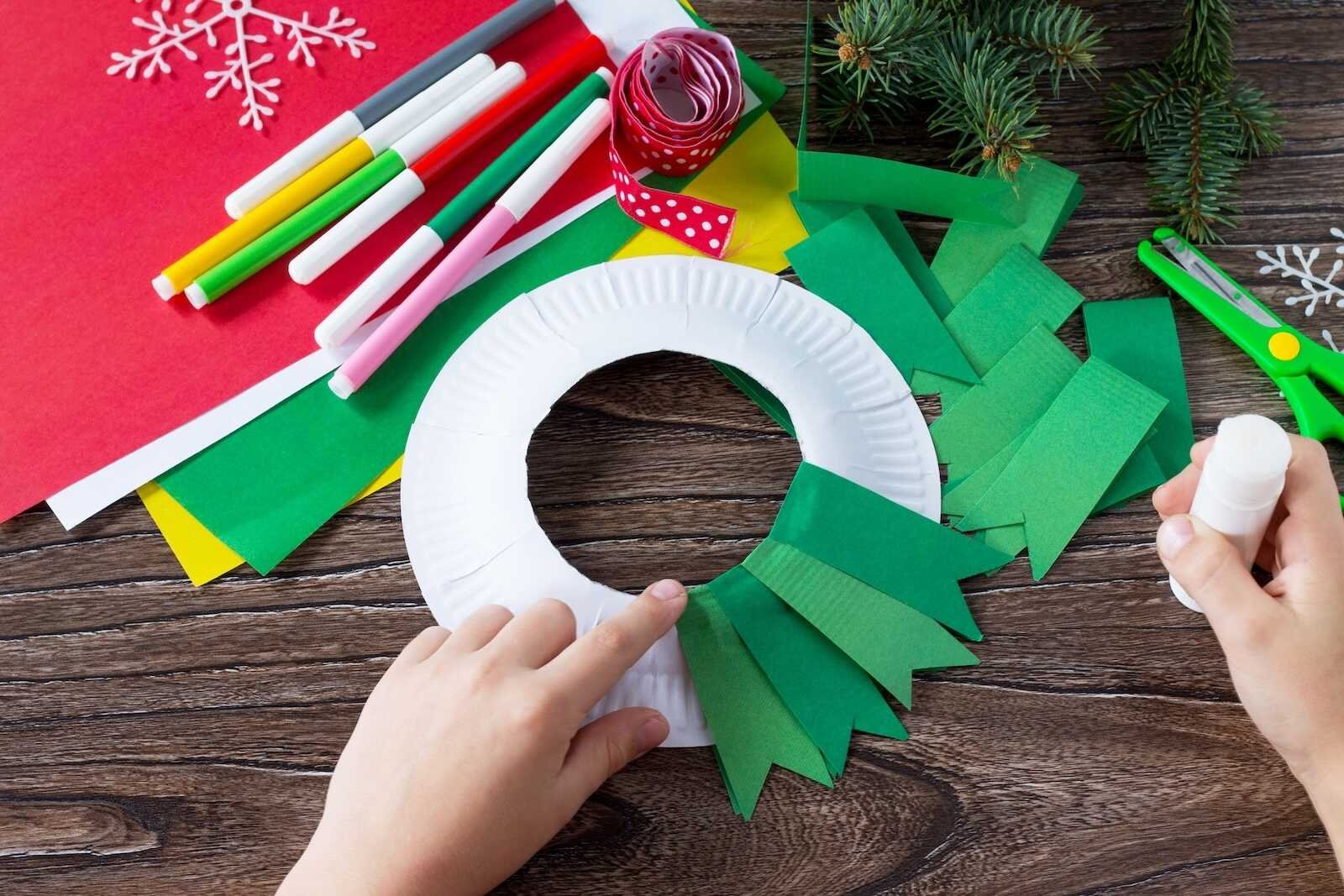 Step-by-Step: Paper Plate Christmas Wreath Kids Craft