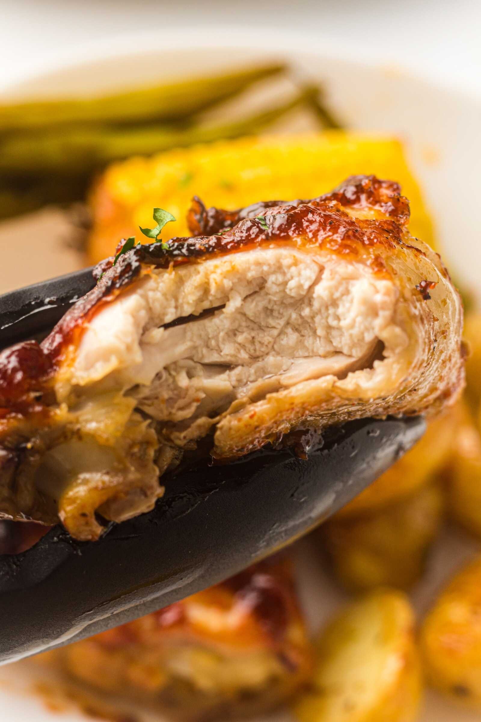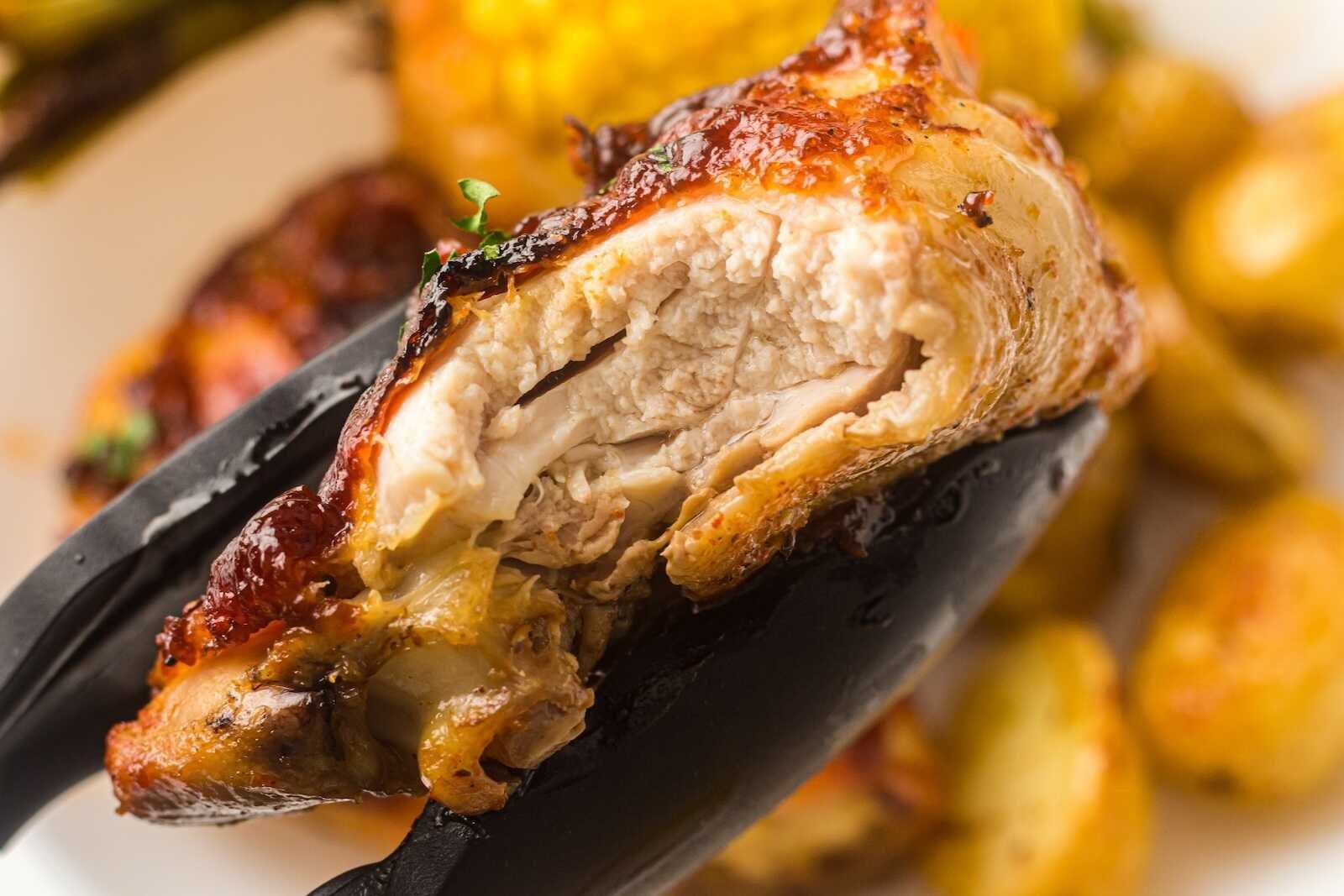- Chicken skin is golden and slightly crisp